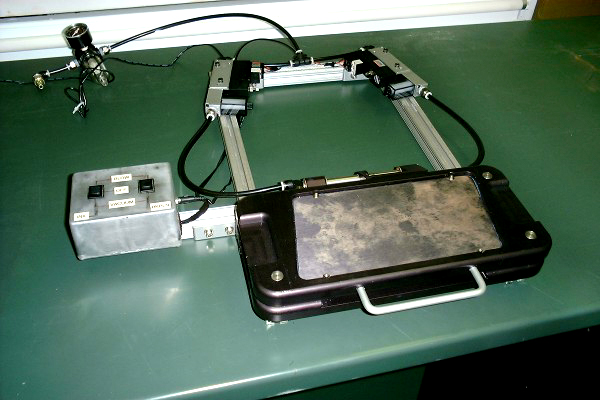 replaced registration table, sheets and marks with hinged vacuum table with registration pins and hard stops. once sheets are attached to plates with vacuum, user swings top layer in place over bottom layer. vacuum is then turned into positive pressure to “blow” the top layer into place. various hand holding positions were created for user comfort.